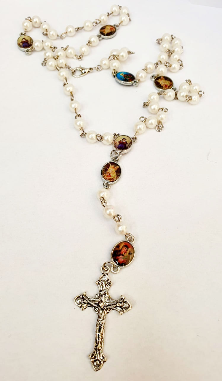 Terço Pérola com Santo no Pai Nosso